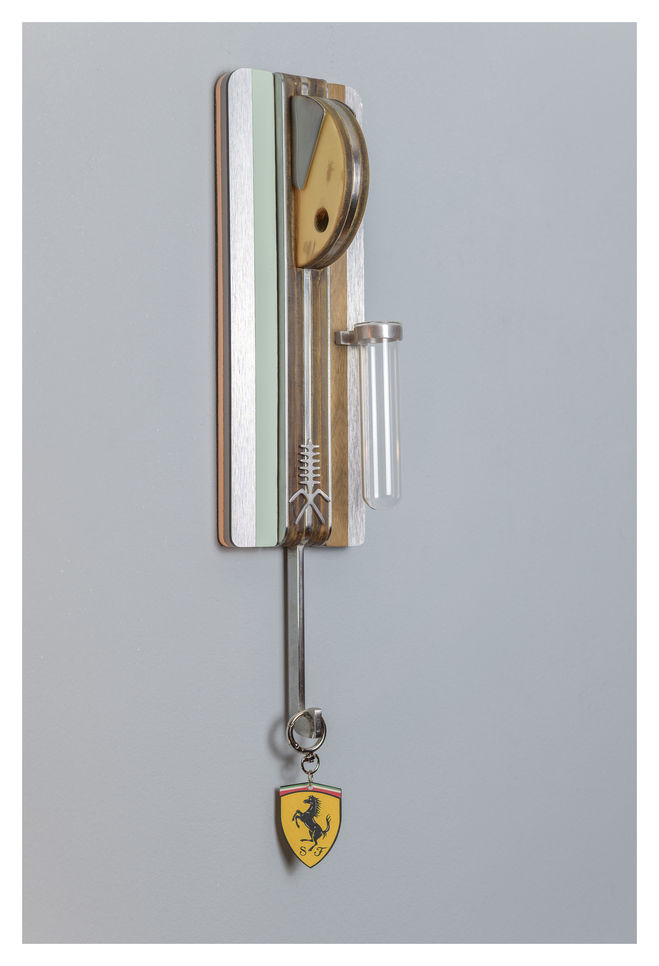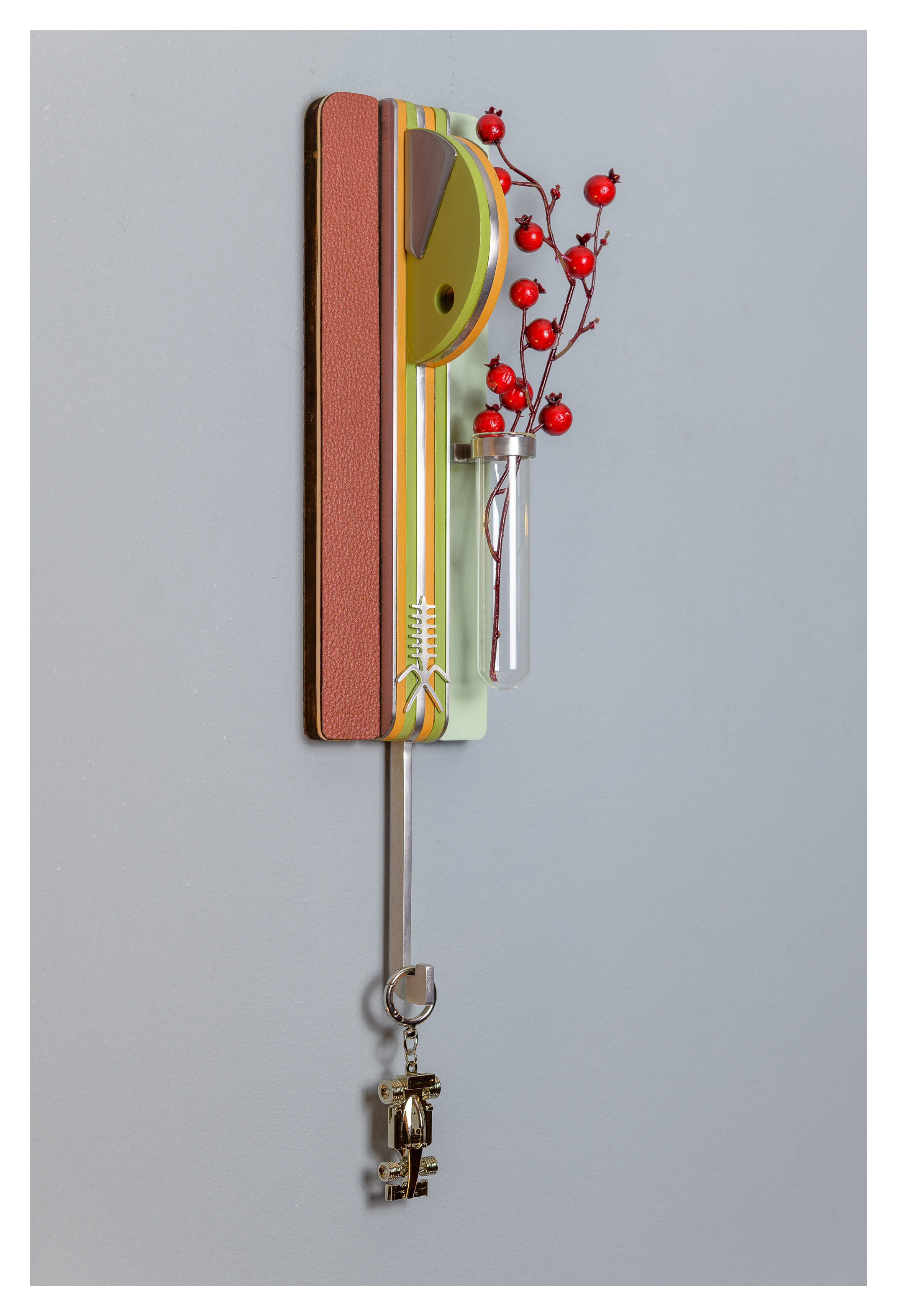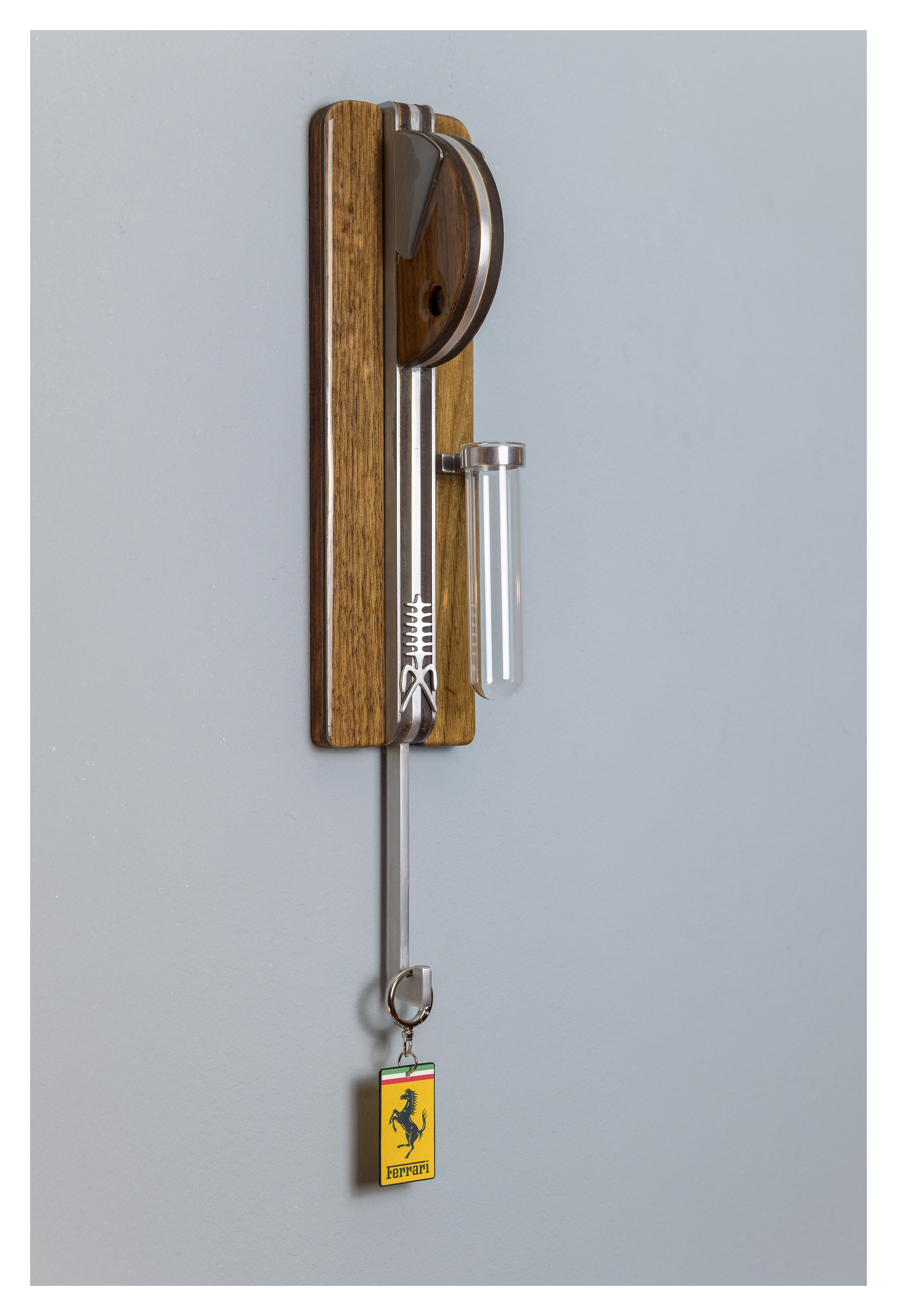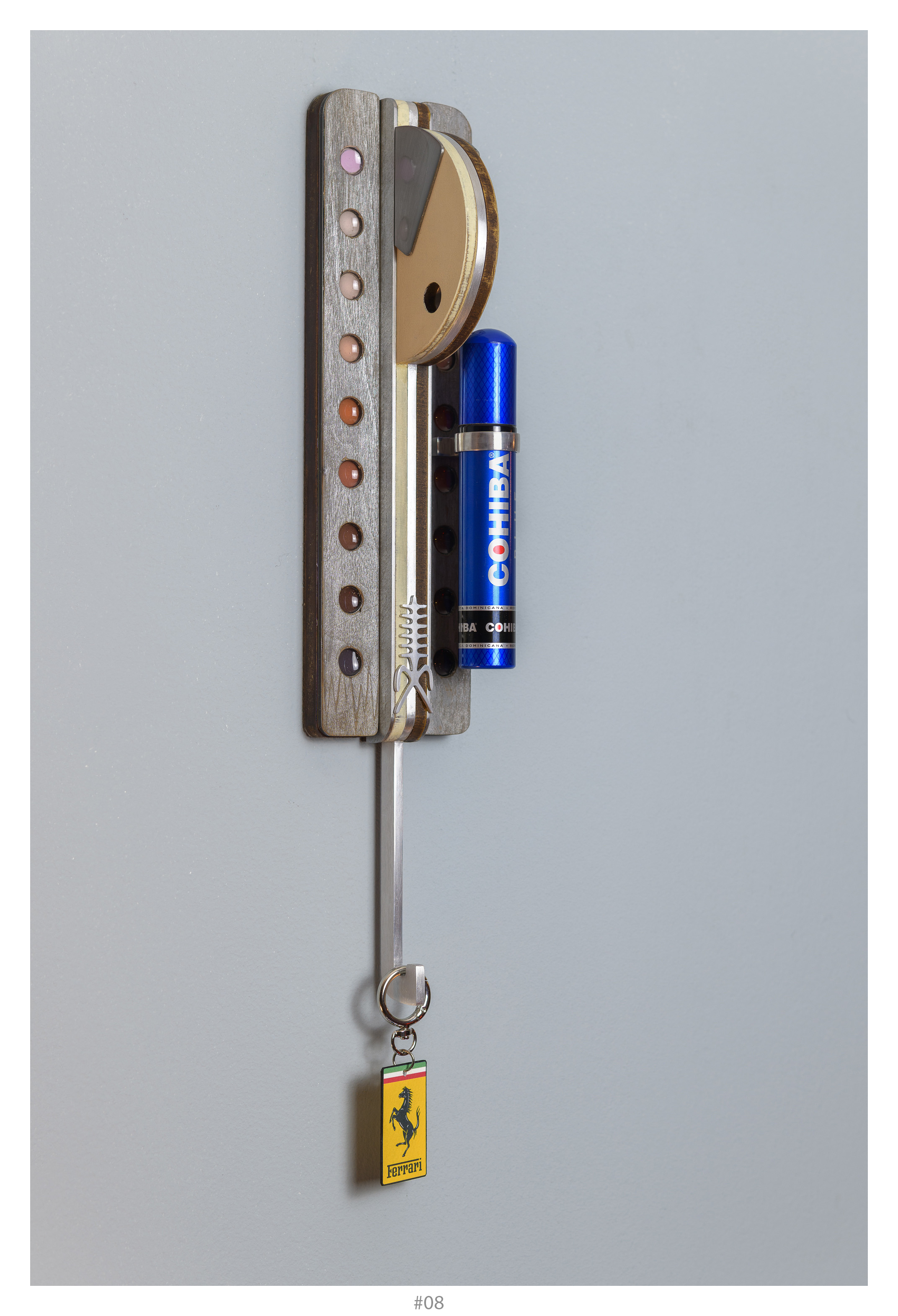 What sets this work apart is its thoughtful functionality: the lower elements serve as hooks for keys, hats, or scarves, transforming the sculpture into an inviting part of the viewer’s daily ritual.Magnetic, repositionable arms allow the figure’s gesture to shift, giving every piece a dynamic, interactive quality.
