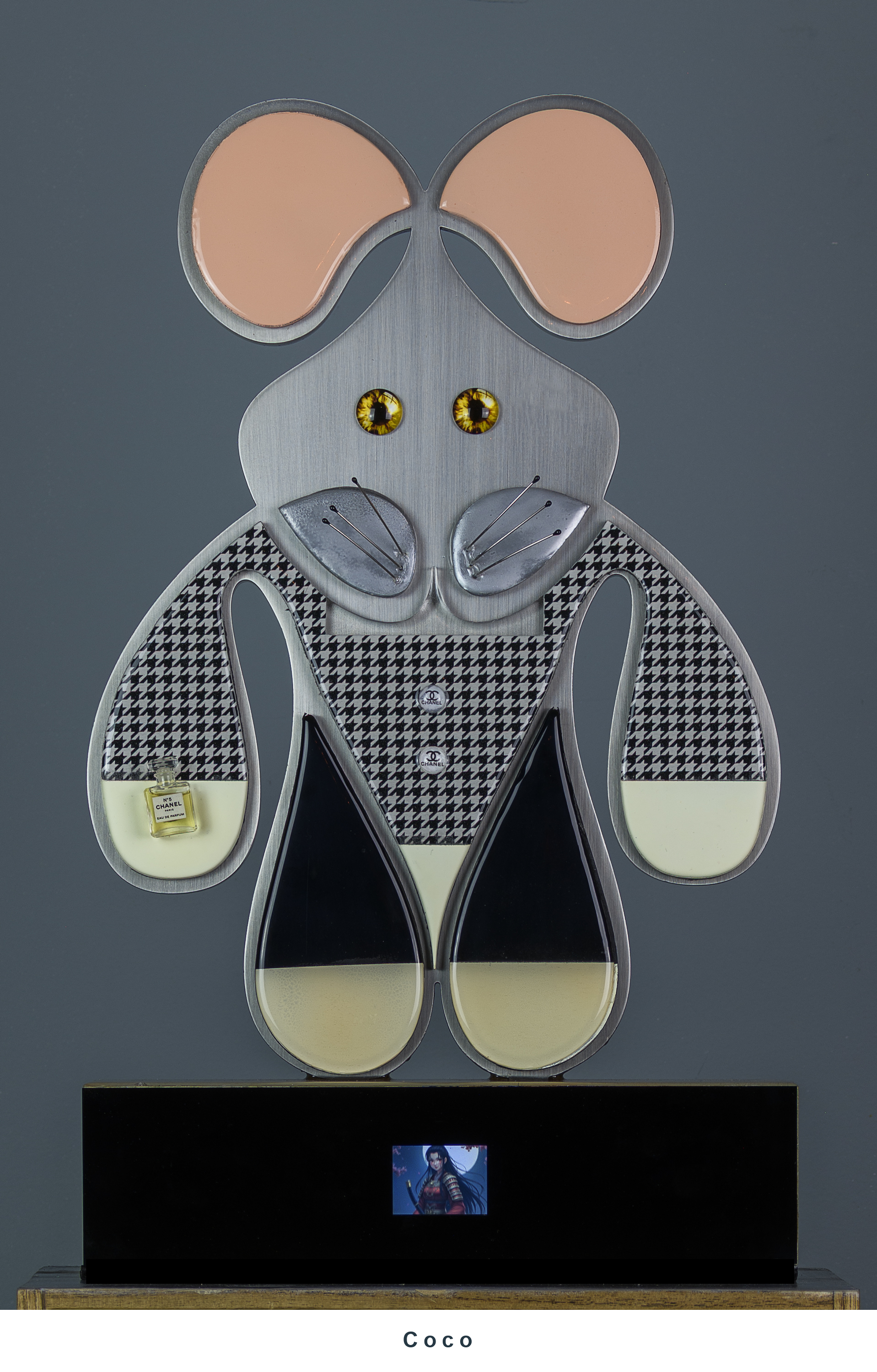 This series of modular bunny sculptures invites playful metamorphosis through magnetic, swappable parts, each piece transforms into a new identity: from fashion icons to legendary figures. Inspired by vintage toys and pop culture, the work turns the act of collecting into a creative, interactive experience. It’s a sculpture that shifts with you, celebrating change, memory, and the joy of becoming.